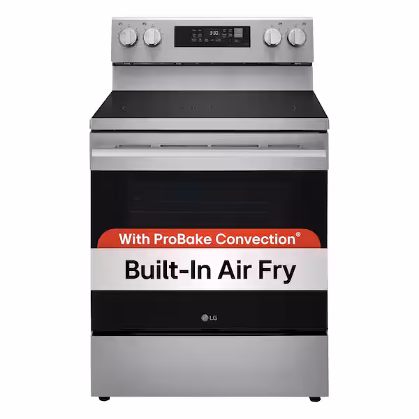 Why buy yet another gadget that takes up counter space. This LG range with built-in Air Fry delivers crispy flavor fast with no preheating and makes enough to feed a crowd-from zucchini fries to hot wings. Main dishes also shine, thanks to fan convection that distributes heat to all areas of the oven for more precise baking and roasting. When cooking is done, cleanup is quick and easy with the 10-minute EasyClean cycle that helps keep your oven looking like new.