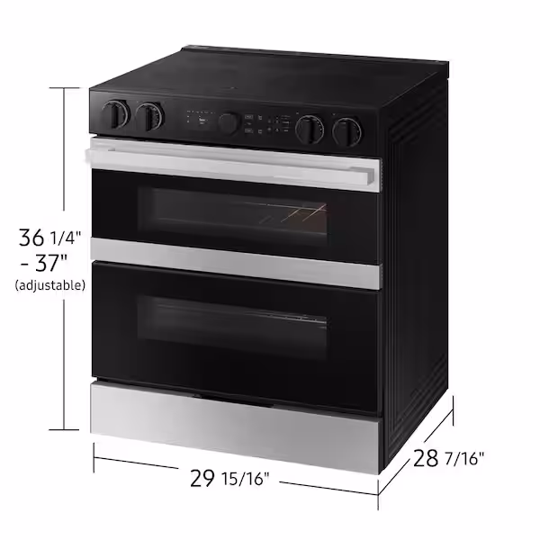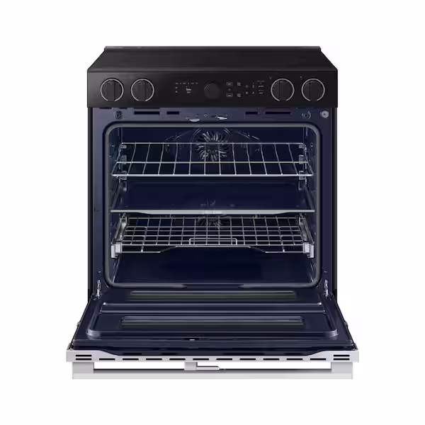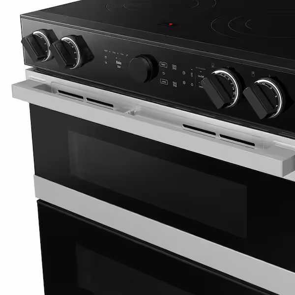 Samsung’s smart electric range features a Flex DuoTM dual oven that lets you convert one oven into two so you can cook multiple meals at once at different temperatures. Illuminated Precision Knobs let you know if your cooktop is on from a distance and precisely control and ensure proper activation of your cooktop. The range’s stylish and contemporary Bespoke design will give your kitchen a premium look.
