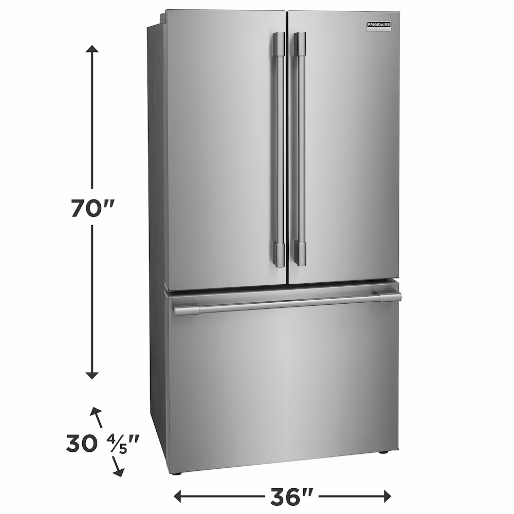Frigidaire Professional 36-inch W 23.3 Cu. Ft. French Door Refrigerator with Internal Water Dispenser in Stainless Steel, Counter-Depth – ENERGY STAR® PRFG2383AFF
