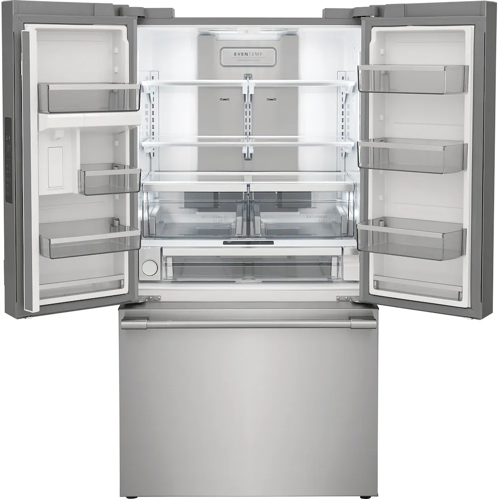 This Frigidaire Professional French door refrigerator offers a freshness system that maintains the taste and texture of even your most delicate foods. Our freshness system is packed with technologies that keep food fresh and reduce food waste, such as our cooling system, advanced crispers, and our genuine air and water filtration.