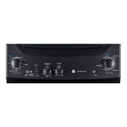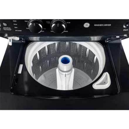 Save space and make laundry day convenient with the GE washer and dryer combo. Ideal for apartments and small laundry rooms, this laundry centre features a 4.4 cu. ft. washer and 5.9 cu. ft. dryer. With various wash and dry cycles, this washer-dryer combo can tackle tough laundry loads, all while staying quiet during operation.