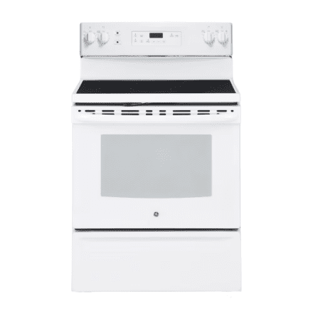 For convenient cooking and perfect results, this GE electric range with self-clean oven has a 5.0 cu.ft. capacity for roasting and baking all your favorite dishes. The smooth ceramic glass cooktop features electric radiant elements for easy cleaning and beautiful cooking performance.