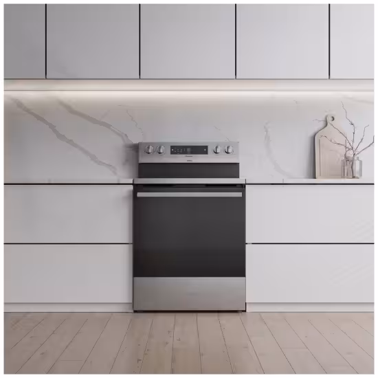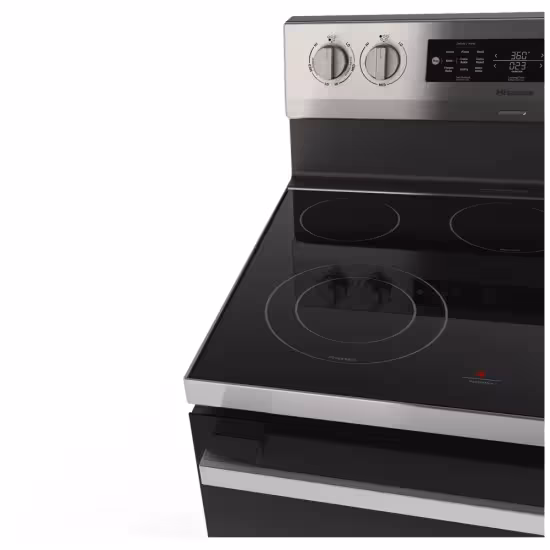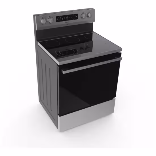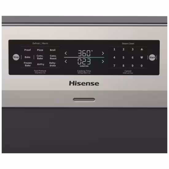 The Hisense HBE3502CAS electric range brings a premium cooking experience to everyday kitchens, combining generous capacity, smart cooking technology, and an elegant stainless-steel design. With a spacious 5.8 cu. ft. oven, it easily handles everything from weeknight sheet‑pan dinners to large holiday roasts and multi‑rack baking, so you can cook more dishes at once without compromising results. Its 30-inch width fits seamlessly into standard range openings, making it an ideal upgrade for most kitchens while still offering the feel of a professional appliance. At the heart of this model is its advanced True European Convection system, which uses a powerful fan and dedicated heating element to circulate hot air evenly throughout the cavity. This helps deliver faster preheating, more consistent browning, and reliable baking on every rack, whether you’re roasting vegetables, baking cookies, or finishing a crisp pizza. Another standout feature is the built‑in Air Fry mode, allowing you to enjoy crispy fries, wings, and snacks with significantly less oil than traditional deep frying, all inside the main oven so you don’t need a separate countertop appliance. For everyday convenience, the HBE3502CAS includes a Steam Clean function that softens light spills and splatters using water and gentle heat, so you can wipe the interior clean without harsh chemicals or lengthy self‑clean cycles. The smooth ceramic cooktop offers five radiant elements, including dual‑size front burners that adapt to different pan diameters, giving you the flexibility to simmer sauces, boil pasta, or sear in larger skillets with efficient heat control. Intuitive glass‑touch oven controls paired with weighted front knobs provide a modern look and a reassuring, precise feel, while the large glass door and bright interior lighting make it easy to monitor your dishes without opening the door and losing heat. Thoughtful details like multiple rack positions, a storage drawer for your most‑used pans, and a clean, stainless‑and‑black exterior ensure this range looks as good as it cooks. Whether you’re outfitting a new kitchen or replacing an older stove, the Hisense HBE3502CAS offers a compelling blend of capacity, versatility, and advanced features—such as True European Convection, integrated Air Fry, and Steam Clean—that are often reserved for more expensive models, making it a smart choice for home cooks who want more performance from their everyday range.