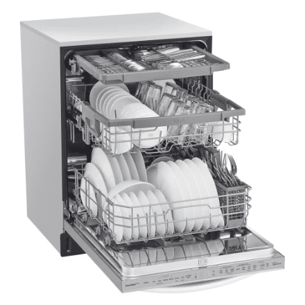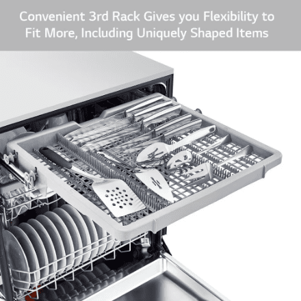 Post-dinner party cleanup, let your NSF certified LG dishwasher do the heavy lifting. LG QuadWash® provides maximum cleaning coverage making it easier than ever to get your dishes clean and with Dynamic Dry enhanced with TrueSteam® technology you get up to 60% less water spots. The 3rd rack gives you more space to fit everything from long flatware to oversized cooking utensils.