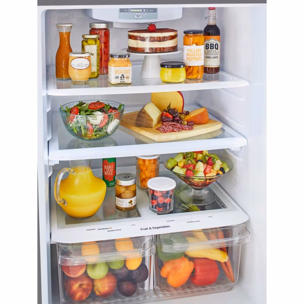 Capacity means a lot to you, and our top-mount refrigerator features 30-inch width 20 cu. ft. refrigerator and freezer storage space. Youre also focused on freshness, and thats why youre sure to appreciate LGs humidity-controlled crisper and full-width gallon door bins. Theyre on a mission to extend the life of your fruits and vegetables, freshness that shines clear through with LGs advanced LED interior lighting.