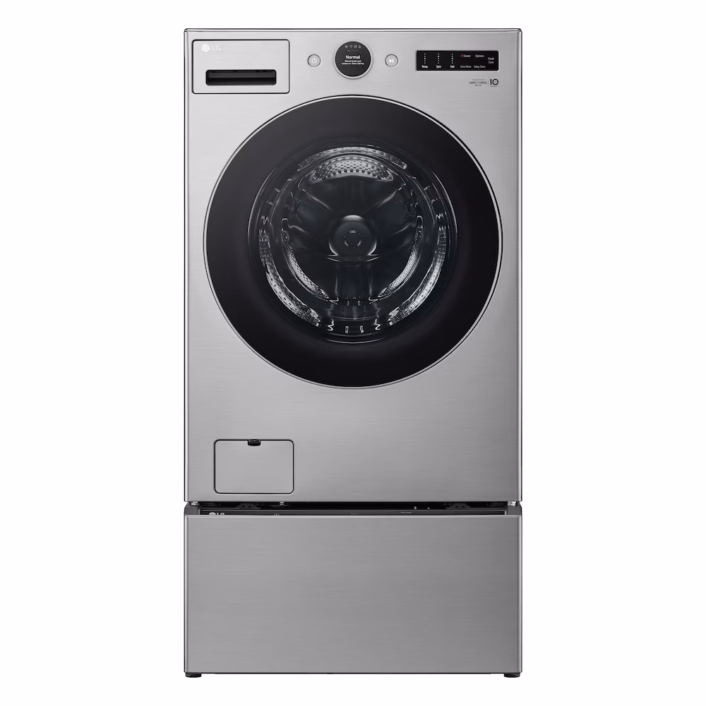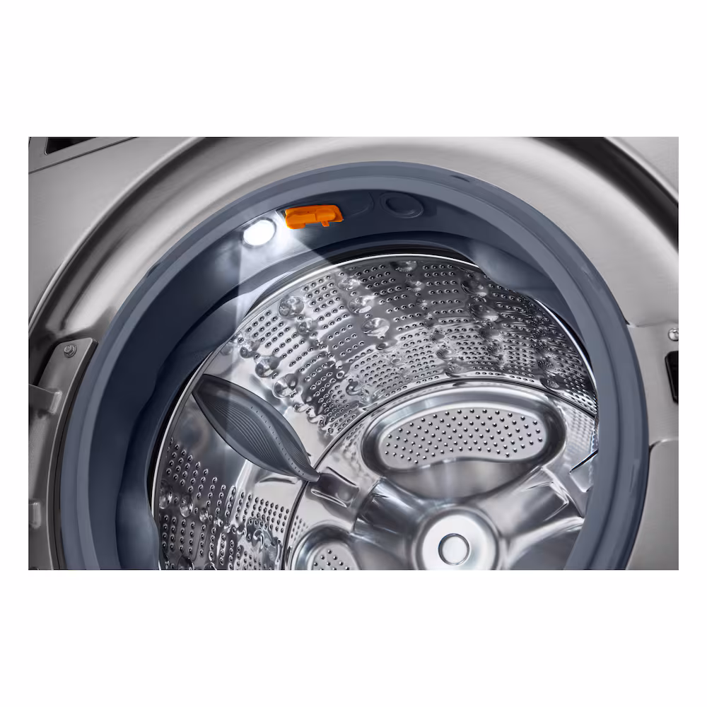 5.2 cu. ft. Capacity Smart Front Load ENERGY STAR® certified washer with TurboWash 360 and AI DD Built-In Intelligence. Built-in sensors use AI technology to detect fabric texture & load size, then automatically select the right wash motions, temperatures and more for advanced fabric care. The modern flat front design, graphite steel finish and tinted, tempered glass doors bring a premium point of view to your laundry space. Real tempered glass door provides a sleek, stylish look that also resists shock and scratches. Smooth Surface Helps Prevent Snags. Unlike porcelain and plastic, stainless steel tub avoids chips that snag on and ruin clothing. Life’s better when your home runs smart. Get It All Done In Less Time.