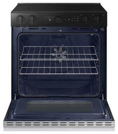 Enjoy the style and convenience of a Samsung 30″ true convection slide-in induction range in your kitchen. This elegant range features a recessed handle and a contemporary, bespoke design, making it a great fit for your space. And thanks to great features, like air fry and convection, you can deliver delicious meals to your family and friends, fast.