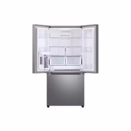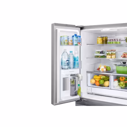 The Samsung 33 in. French Door refrigerator creates a stylish and modern kitchen with its compact design and recessed handles. The Beverage Center provides convenient access to refreshing cold, filtered water. With the Dual Auto Ice Maker, you can select from cubed ice or Ice Bites that chill your drink faster.